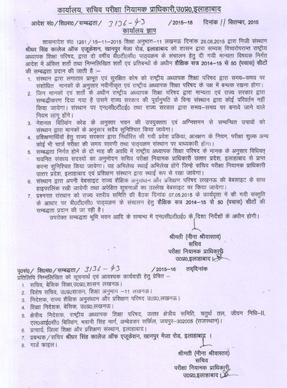 Affiliation to S.C.E.R.T. Nishant Ganj Lucknow U.P.